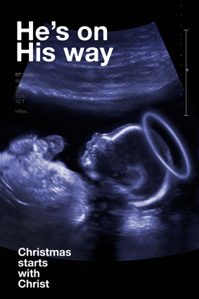 El anuncio muestra los rasgos de un pequeño niño junto a la frase “He’s on His way” (Está en camino) y el objetivo es que llegue que llegará a más de 40 millones de personas. Los responsables argumentan que quieren difundir el verdadero sentido y origen de la Navidad, utilizando la imagen de un niño Jesús tiempo antes de nacer. También se menciona: “Christmas starts with Christ”, que siginifica “La Navidad comienza con Cristo”, pero que en inglés tiene un doble sentido, ya que la palabra “Christmas” (Navidad) comienza con “Christ” (Cristo).