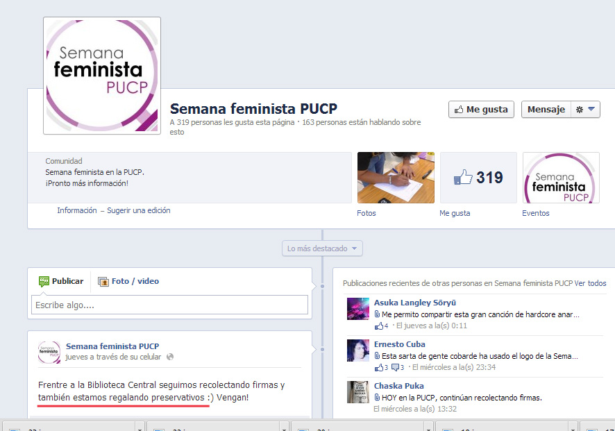 Esta campaña en la ex PUCP llevaba el nombre de “Semana Feminista” y comenzó el 22 de abril pasado. Está demás decir que es de público conocimiento que la ONG DEMUS desprecia y considera como enemiga de sus objetivos a la jerarquía de la Iglesia Católica y su doctrina.